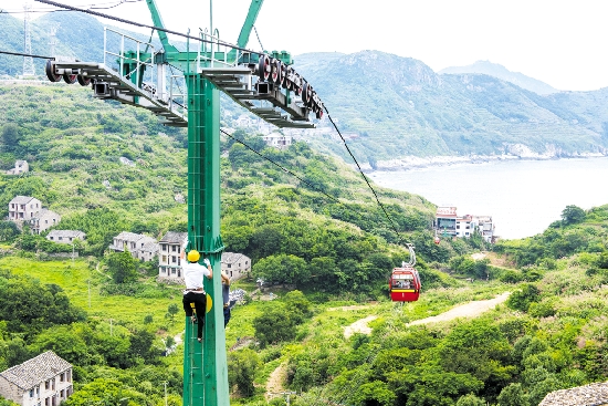6月15日下午3时3分,洞下沙滩,一辆缆车突然停止前行,悬挂在半空中。缆车里有5名乘客。