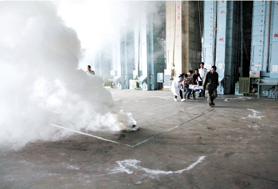 6月14日,市农机总站会同新河、箬横、滨海三镇消防队,在市红日农业合作社举行“农机事故应急处置演练”,模拟在稻谷烘干机发生火灾等意外情况下,开展现场人员逃生自救、扑灭火灾等演练,全面落实企业安全生产主体责任。