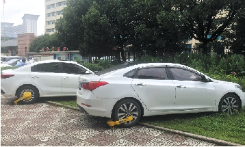 其他两辆车的车主一直未过来,执法人员在车上贴了调查询问通知书,让其赔偿和接受处罚。截至6月23日,三辆车车主都已赔了50元和被罚了100元。