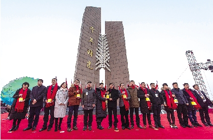 本报讯(记者王妙德/文 朱海伟/图)昨天上午6时46分左右,当2018年第一缕曙光穿破云层,到达石塘曙光碑时,8盏寓意“圆梦新时代”的正能量灯被挂到了梦想树上,宣告第三届浙江省“争做中国好网民”接力活动在我市正式揭幕。