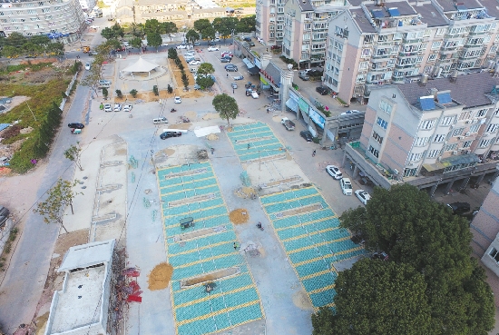 日前,松门镇育英菜场前的一块杂地,被改造成了小广场和停车位。