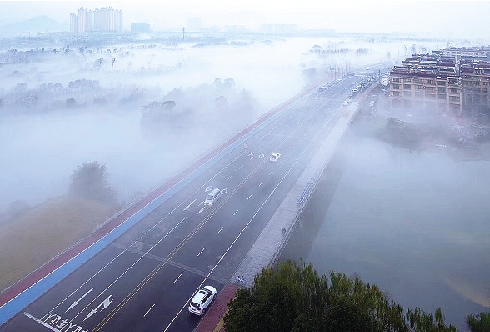 | 彩色九龙湖 雨天的好处,就是容易出雾。这是除了朝霞、夕阳之外,摄影爱好者最喜欢的天气元素之一。据说,前几天的大雾天气,藤岭、元宝山等山头,挤满了摄影爱好者。他们一个个都架着三脚架,端着各类镜头,捕捉着多变的雾天奇幻景色。 这张照片,避开了人满为患的各个山头,着眼于九龙湖的彩色健身道。照片斜线构图,让画面有了纵深感。崭新的彩色道路,因为雾气将其他元素遮挡住,反而在雾中更加明显。背后的九龙汇生态湿地公园,有了雾气的笼罩,更加引人入胜。这张美景图,让生活在这里的市民幸福感增强不少啊。 拍友 章丹书摄 |