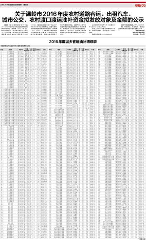 城市公交、农村渡口渡运油补资金拟发放对象及金额的公示