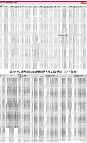 城市公交标台数与实际运营月份汇总及明细(2016年度)