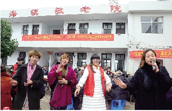 1月23日,在滨海镇敬老院,滨海镇团委、市曙光义工协会、滨海镇戏曲协会联合开展爱心活动,陪着百余位老人及低保特困户热闹热闹。