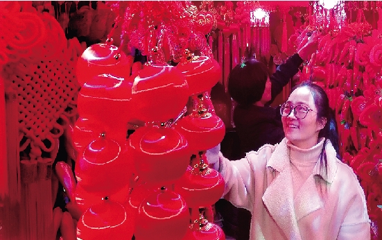 1月23日夜,来自玉环市的吴潇静女士正在挑选灯饰,准备为住在太平街道后应村的父母家装饰一下。