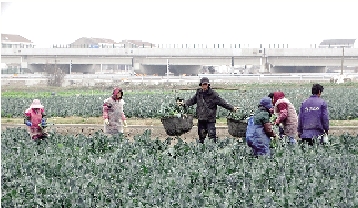 1月24日,箬横镇横陈村的菜农组织小工抢收西蓝花。当天,气温下降,面临持续低温雨雪天气袭来,我市发动和组织各地农民抢收蔬菜,对刚种下的西瓜、东方蜜甜瓜等大棚水果增加薄膜覆盖。
