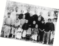“喏,这就是我。”金锡初指着照片里一个穿着黑色上衣的小男孩说道。那时的他才11岁,看上去虎头虎脑的。“爷爷很早就去世了,我父亲有三个兄弟和一个妹妹,照片里有奶奶和叔叔、婶婶及堂兄弟们。最中间那个白发老人便是太婆。”