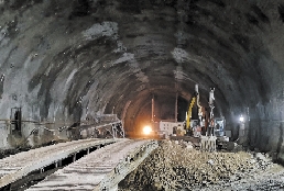 | 近期,楼山隧道内的施工现场。 |