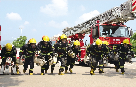 8月9日,市消防大队温岭中队组织开展初战快速出水控火操训练。虽然烈日当空,气温也达到了35℃以上,但是消防战士不惧高温,坚持训练。