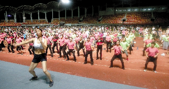 为倡导文明健康的生活方式,促进全民健身与全民健康深度融合,8月8日,温岭市庆祝第十个“全民健身日”——台州市广场舞(排舞)协会送舞下乡暨温岭市健身排舞公益大培训在市体育场启动,400多名广场舞(排舞)爱好者通过网络、微信等方式报名参与培训。他们将在教练的指导下,参加共8个晚上的培训。 本报记者 黄晓慧摄