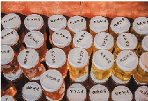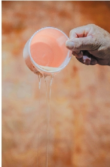 根据这一特点,养蜂人会及时将蜂箱中刚出生的幼虫偷出,把幼虫移到人造的“王浆碗”中,再将“偷梁换柱”后盛有幼虫的“王浆碗”放回蜂箱中,工蜂见到一排排盛有幼虫的“王浆碗”,便主动围上来不停地分泌蜂王浆哺乳碗中的幼虫,这样就成功地将蜂王浆骗到了“王浆碗”中。