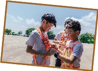 | 小营员互相帮助,系上安全带。 |