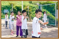 | 新的一天,教练们正在指导营员们打拳。 |