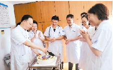 “医师节快乐,大家辛苦了!” 每到一处,各位领导送上鲜花和蛋糕,并与每位医生交谈,感谢大家辛勤工作和对医院的无私奉献。“有鲜花,也有祝福,除了惊喜,更多的是感动。”脾胃病科主任程胜平说。
