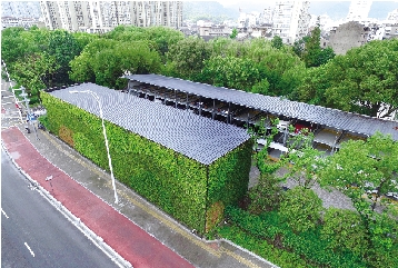 我市在创建国家森林城市中,见缝插针搞绿化,近日在新建成的月河湾立体车库外侧栽种绿化小盆景,形成立体绿化,提高城市绿化率。