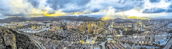 近日傍晚,夕阳映照下,城市与霞光融为一体,看上去如画卷一样美。