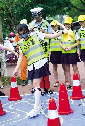 8月22日,锦园小学五(6)班20多名学生来到市交警大队开展暑期社会实践活动。在交警大队红绿灯路口,市慈善义工协会交警服务队队长张启兵给学生们讲解了交通安全知识并教他们交通手势。讲解完后,他还别出心裁地开展“酒驾体验”活动,通过模拟眼镜,让学生和家长身临其境,真正了解酒驾的危险性。