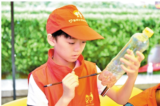 活动现场,志愿者们演示了如何变废为宝,以减少一次性塑料制品的使用。志愿者们使用彩笔、毛线等,巧手点缀装饰,将塑料瓶变成了实用又美观的花瓶、笔筒等生活用品。