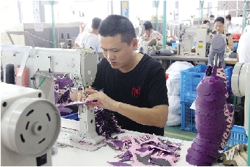 | 华一车间里,电脑罗拉车代替了传统针车。 |