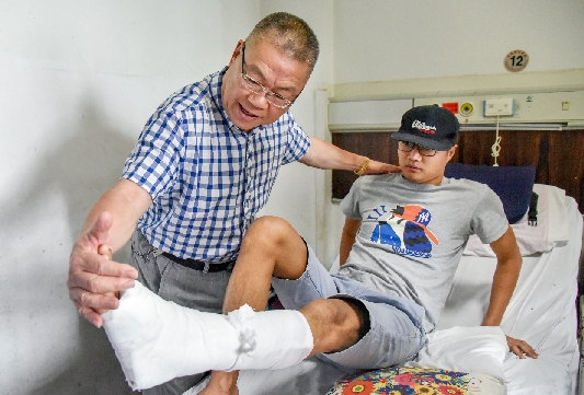 这位患者的身份有点特殊,他长居新加坡,是一位工程师。大约半个月前,吴先生在踢球时不慎摔倒,后被诊断为左跟腱断裂,“当时走路困难,感到剧烈疼痛。”在岳父的推荐下,他决定回国治疗。
