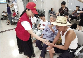 8月24日,我市卫计系统各单位开展“向陋习宣战 与文明同行”之“清凉一座城 文明你我他”集中志愿日行动,通过分发矿泉水、凉茶、青草糊、绿豆汤等饮品和消暑药品,为医院里的患者和高温下劳作的人们送去清凉。 本报通讯员 黄艳熙 郑萌摄