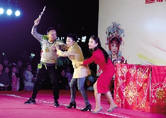 “因越剧而相知,因戚毕而相聚,因杭娟而相约”,12月1日晚,由太平街道办事处主办的创建省示范文明城市综艺活动暨杭声娟语传戚音第三届戏迷见面会在市区街心公园举行。晚会除三句半《文明城市来创建》和小品《高空抛物》外,其余节目都是各地戏迷表演的戚派、毕派等流派的越剧选段、清唱等,国家一级演员、中国戏剧梅花奖得主、戚派名旦王杭娟和原温岭越剧团团长陈彩霞等也上台表演。图为小品《高空抛物》。