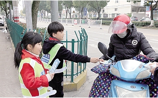 本报讯(通讯员王蒋浩/文 方挺/图)12月12日中午,泽国二小举行了“小手拉大手,文明交通齐参与”活动。学生们在泽国交警中队警官们的带领下当了一回小交警,他们向交警叔叔学习交通指挥,走上街头进行文明交通劝导。