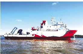 2018年4月1日上午,浙江温岭天时造船有限公司建造的“沈括”号科考船上水。 (图片由受访者提供)