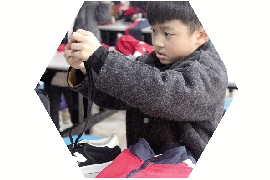 针对不同年级,学校安排了不同的项目,一旦完成,就能获得相应的奖章。一年级比拼的项目是叠衣服、系鞋带。每个参赛人员迅速拾起衣裤和鞋子,蓄势待发。只听一声令下,开始行动。一折一放,敏捷而准确,短短几十秒就完成了衣裤折叠和系鞋带的任务。