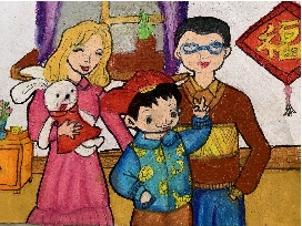 | 全家福 ●大溪二小白山校区四(2)班 张叶 指导老师 王丹杨 我的家非常温馨!洁白的墙上挂着大大的福字,紫色的窗帘显得家里特别温馨。家里除了温柔的爸爸,漂亮的妈妈,还有可爱的小兔子。 |