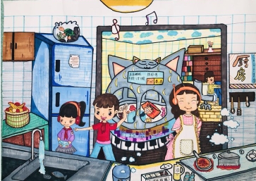 | 快乐厨房 ●横峰小学六(2)班 辛奕萱 我最爱妈妈做的饭菜。在做饭的时候,我和弟弟总喜欢给妈妈当小助理。我们一边听歌,一边干活,好不快乐! |