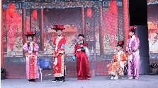 八(1)班男同学演绎的小品《甄嬛后传》。