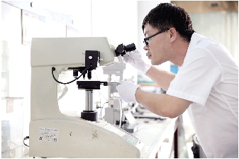 赵玲方对检测中心里的检测设备如数家珍:这一台是德国生产的硬度计。以前传统的硬度计是需要手动操作的,但是人工操作时每个人的力度是不一样的,而且时间无法准确控制,变量因素很多,多多少少会造成一些误差。但是这台设备就不一样了,完全可以自动控制,还可以设置重复时间,能提高检测的精准度。