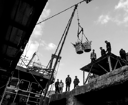 | 满载回归 入冬后,气温逐渐下降,但温岭沿海的码头市场热度却未曾消退。在码头,我们经常能看到渔船满载着海鲜陆续归港,而岸上等待购买海货的商贩和市民,开来他们拉货的小货车、面包车、三轮车等,将码头挤得满满当当。这张照片是站在渔船上拍摄的,当时,渔民正通过吊机将海鲜吊到岸上,长长的吊臂横穿了整个画面,两个悬空挂着装满海鲜的篮子,正好处在画面的三等分点上,成为这张照片的焦点。 拍友 林继军 摄 |