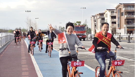 1月6日下午,城东街道举办“共创美丽家园 环九龙湖自行车赛”,用行动带动身边人,助力省示范文明城市创建。