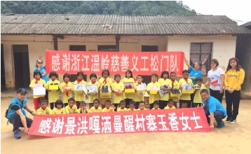 勐海县位于云南省西南部、西双版纳傣族自治州西部,是闻名中外的普洱茶的故乡和中国产茶最早之地,当地人多以种植橡胶、茶叶、甘蔗等维生。西双版纳58公益的志愿者李建华告诉记者,此次松门服务队捐赠的童鞋,他们将分发给勐海县勐阿乡纳金村的贫困儿童和勐遮镇景真小学的贫困学生。“去年暑假,我们就曾为那里的孩子们捐赠了1000多双童鞋。再过不久就过年了,趁着这几天我们加紧打包寄出,就是希望能够让孩子们过年穿上新鞋。”何荣富说,今后他们将继续关注勐海县孩子们的情况,加深云南和温岭两地的情感联系。