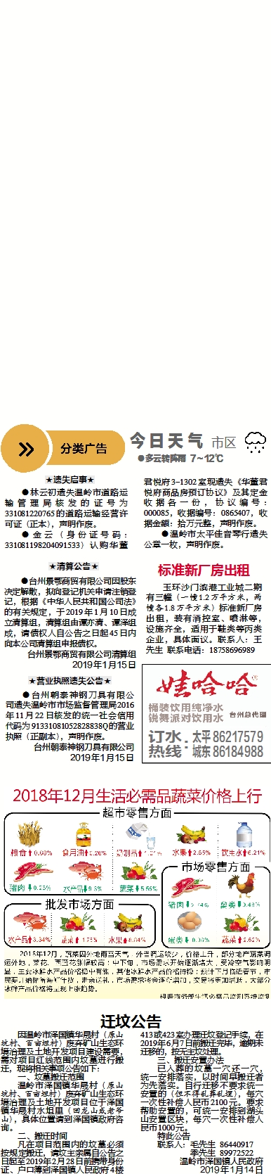 ●林云初遗失温岭市道路运输管理局核发的证号为331081220765的道路运输经营许可证(正本),声明作废。