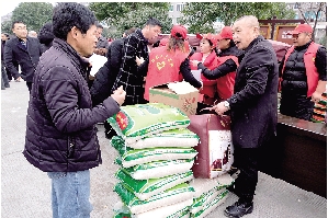 当天上午9时,天气虽然有些阴冷,但茅洋村村部广场上却洋溢着暖意。棉被、大米、油等日常用品和食品堆得老高,这些都是市慈善总会为温峤镇757名低保对象准备的慰问物资。在义工们的帮助下,低保对象有序地排队领取属于自己的“暖冬礼物”,他们的脸上洋溢着笑容。“这些物资正是我们需要的,太感谢了!”温峤镇西焦湾村的王春香说,每年都能领到被子等过冬物资,她觉得很暖心。