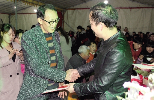 本报讯(通讯员江文辉文/图)为缓解招工难,温岭企业巧打“亲情”牌,尽力为员工营造温馨、和谐的工作、生活环境。1月13日晚,位于松门镇竿蓬村的浙江凯嘉工艺品有限公司在厂区内摆下57桌酒宴,邀请全厂600多名职工及其家属共享丰盛的“年夜饭”,活动现场暖意融融。