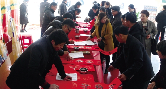 手写春联送祝福,浓浓墨香迎新春。在新春佳节来临之际,为传承中国传统文化,工行温岭支行邀请6名书法家在温岭支行营业大厅为市民写春联送祝福,用这种传统方式,传递暖暖的“工行温度”。