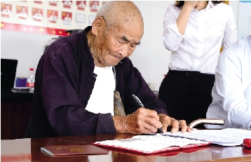 9时许,95岁的埭头村村民金通敏在侄子金再寿的搀扶下,颤颤巍巍地来到签约现场。“拆迁好啊!能够解决我们老房子的问题,我心里再赞同不过了。”金通敏老人说,对于旧城改造,他非常支持,就是担心在房屋建造过程中自己的租房问题。几年前,金通敏老人的老伴去世了,身边无儿无女,日常都靠侄子侄女照顾。 “大伯不用担心,我们兄弟几个会给你安排好的!”看着大伯担心的样子,金再寿对着工作人员拍胸脯表示,会妥善解决这个问题。金再寿告诉记者,大伯的老房子面积为42.6平方米,拆迁后可以换得住宅房屋安置套型建筑面积140平方米。随后,在家人、公证员及箬横镇工作人员的见证下,金通敏老人签约成功,成为霞光路区块旧城改造项目的首位签约者。