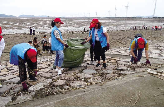 6月2日下午,市朝阳志愿服务中心党支部发起净滩行动,松门慈善义工、箬横慈善义工、东部新区手拉手亲子联盟志愿队等800多名义工、志愿者前往东海塘,共清理出5吨多垃圾。