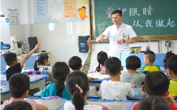 “眼保健操”结束后,眼科医生许勃进入教室,为大家做爱眼健康知识讲座。许勃为同学们介绍了眼睛的重要性,以及近视发生的原因和预防措施,讲课内容深入浅出、通俗易懂,同学们频频点头,对所学到的知识显示出了浓厚的兴趣。