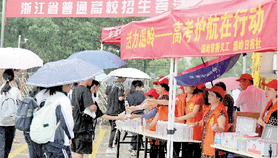 在市二中考点,参与过4次高考护航服务的义工李荣荣,第五次站在了高考服务点;在之江高级中学考点,一名考生因感冒头疼而痛哭,一名义工听说后,赶忙上前为她按摩舒缓;在温岭中学考点,一名小义工站在考场门口的廊下,为每一名进入考场的考生加油……每年高考期间,我们的高考服务点都成为了考生和家长们的“营养补给站”,矿泉水、便民袋、清凉解暑药品、休息区等应有尽有。不管是狂风暴雨还是艳阳高照,爱心从未间断过。