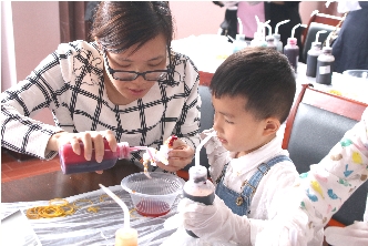 6月1日,泽国镇汇头林村文化礼堂开展了儿童节活动,20多名儿童在父母的陪同下学习扎染。