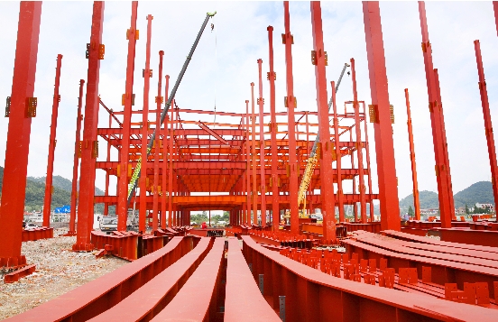 6月12日,万邦德中非医疗科技园正在吊装一期厂房钢梁。