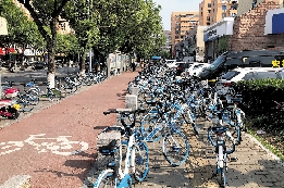 在一次行动中,执法人员发现一名女子将共享单车停在盲道上,劝导其停放在固定停放处。女子虽然听了劝,但不耐烦地嘟囔着:烦死了。6月15日上午,记者在该非机动车停放处看到,这里只斜停着一辆人力三轮车。