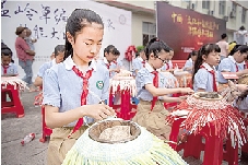 本报讯(通讯员林玲飞)6月6日,在第三个“文化和自然遗产日”到来之际,以“指尖上的文化”为主题的非遗草编传承活动在箬横三小举行。