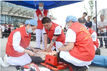 本报讯(通讯员林赛君文/图)6月20日,市红十字会组织开展大型车祸群体伤事件现场急救演练,温岭市第四人民医院7名红十字海上医疗急救队员参与其中。